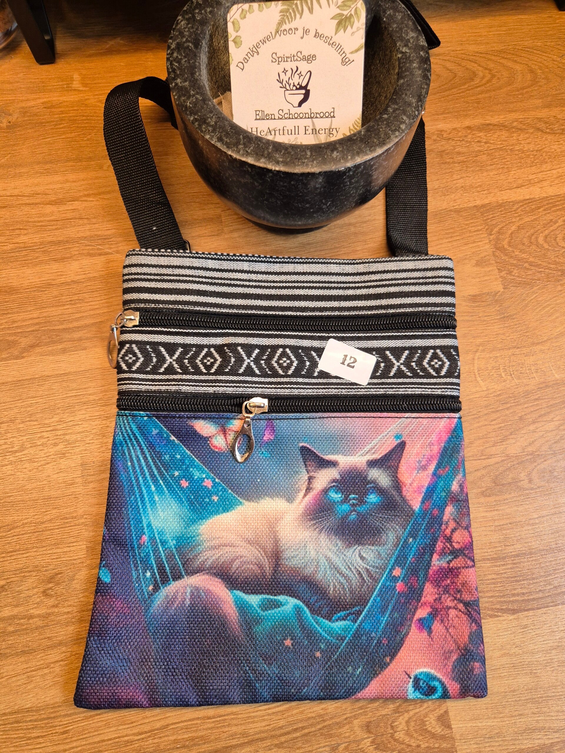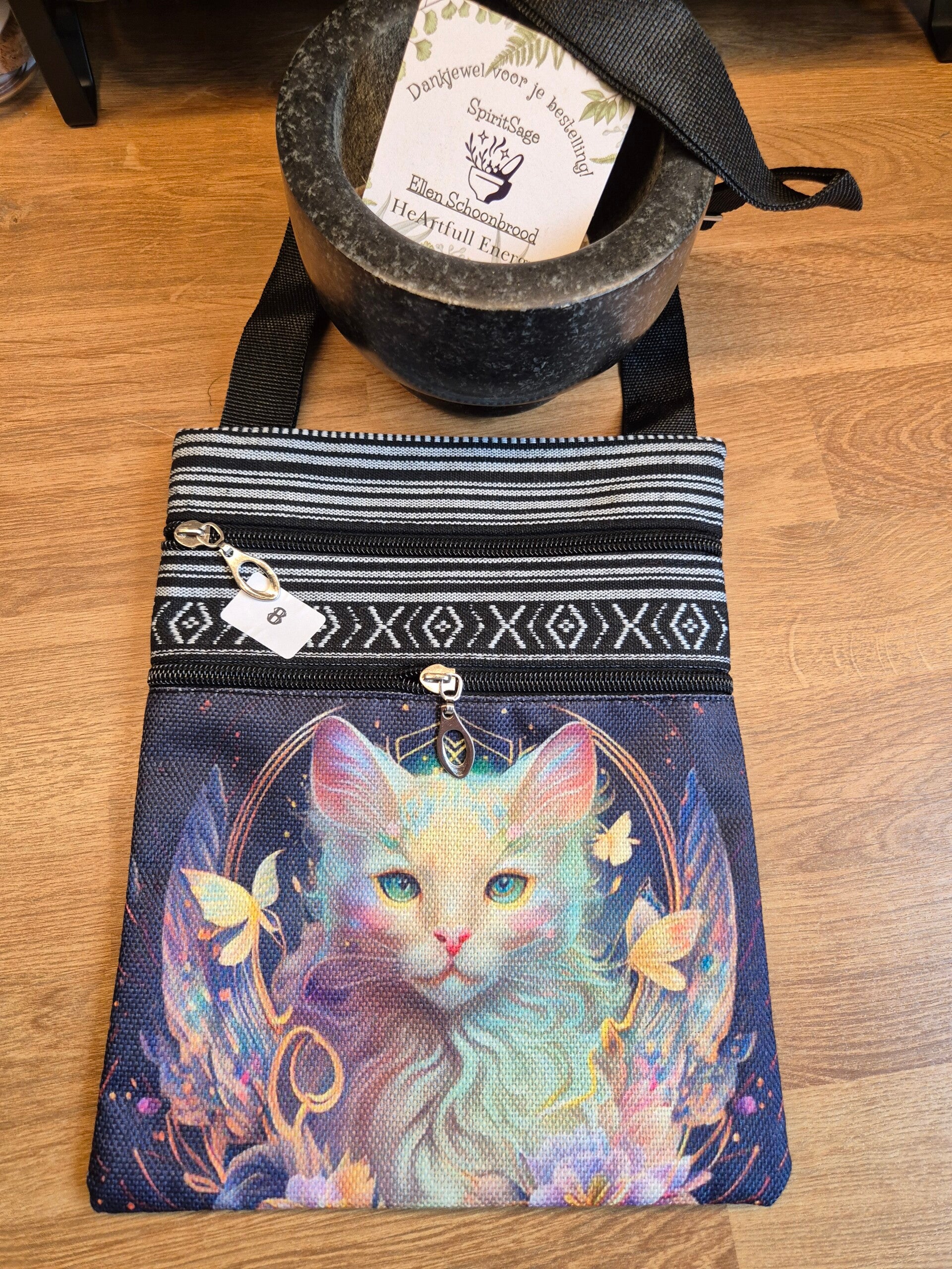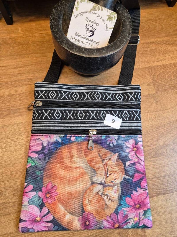 De tasjes zijn 15 bij 20 cm groot en de schouderband is 120 cm en uiteraard korter te maken door de verschuifbare gesp.